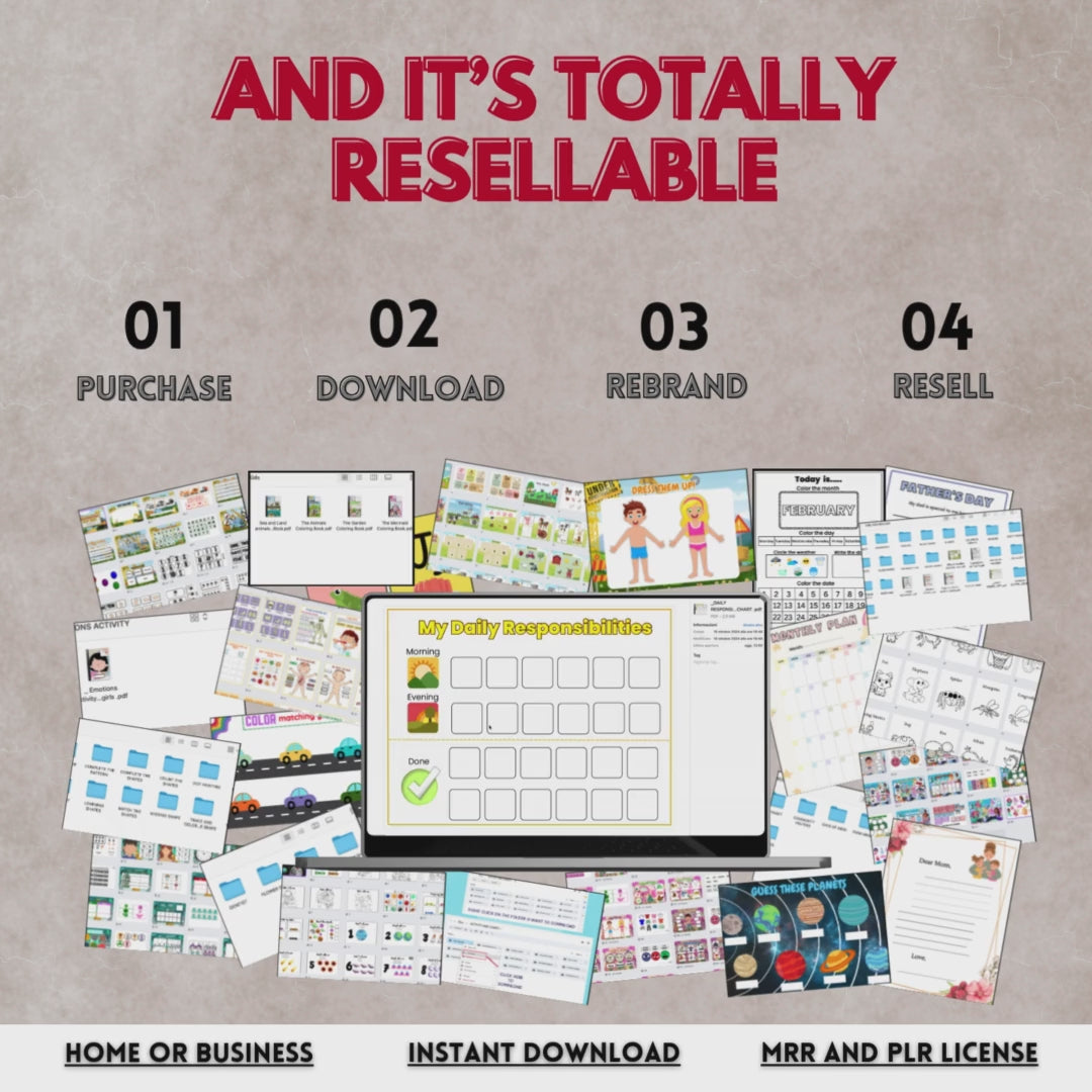 🔴 It is not allowed to resell the Digital PLR product with the same name as "Kid’s Educational Bundle: 8000+ printable All-in-One Learning Fun for Kids! PLR MRR". This name is the intellectual property of Artifyl digital and cannot be used during resale.